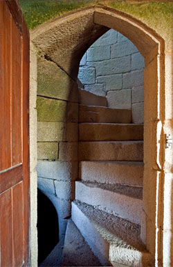 No interior aínda se pode contemplar unha curiosa escaleira dobre de caracol de dobre rampra, exemplar único no país, que comunica dúas amplas estancias abovedadas. Deste xeito evítase o cruce entre as persoas que suban e as que descenden no mesmo intre.